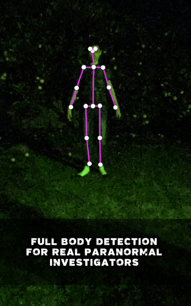GhostTube SLS Camera Alternate detects humanoid bodies in your environment similar to the Kinect SLS cameras used by real paranormal investigators. It uses your phone's camera to identify human figures, human-like and bodies.